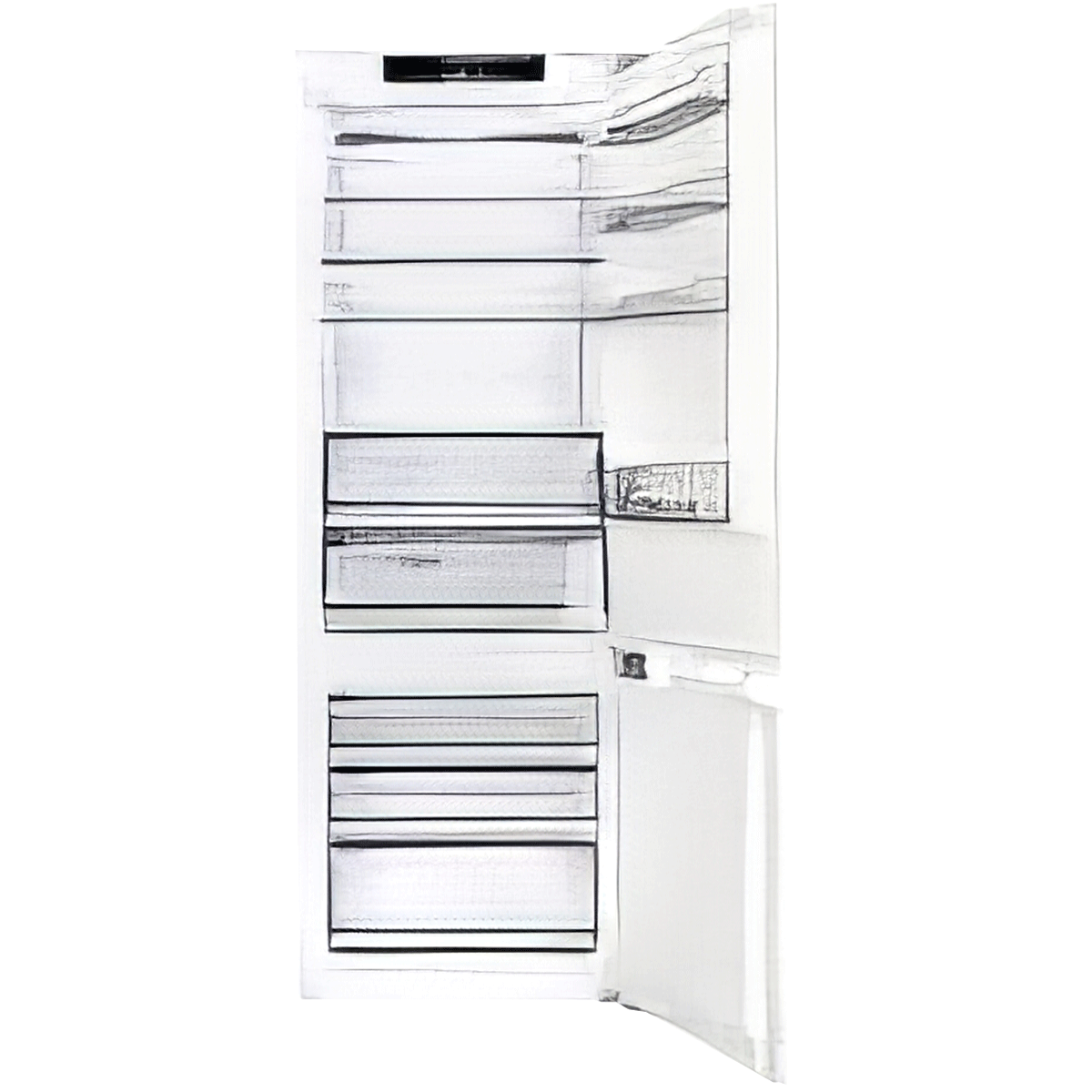 With a total capacity of 775 liters, including 525 liters in the refrigerator compartment and 248 liters in the freezer, this model is the ideal choice for large families. The No-Frost system prevents the formation of ice, keeping food fresh for longer. The metallic design adds both elegance and functionality to modern kitchens.