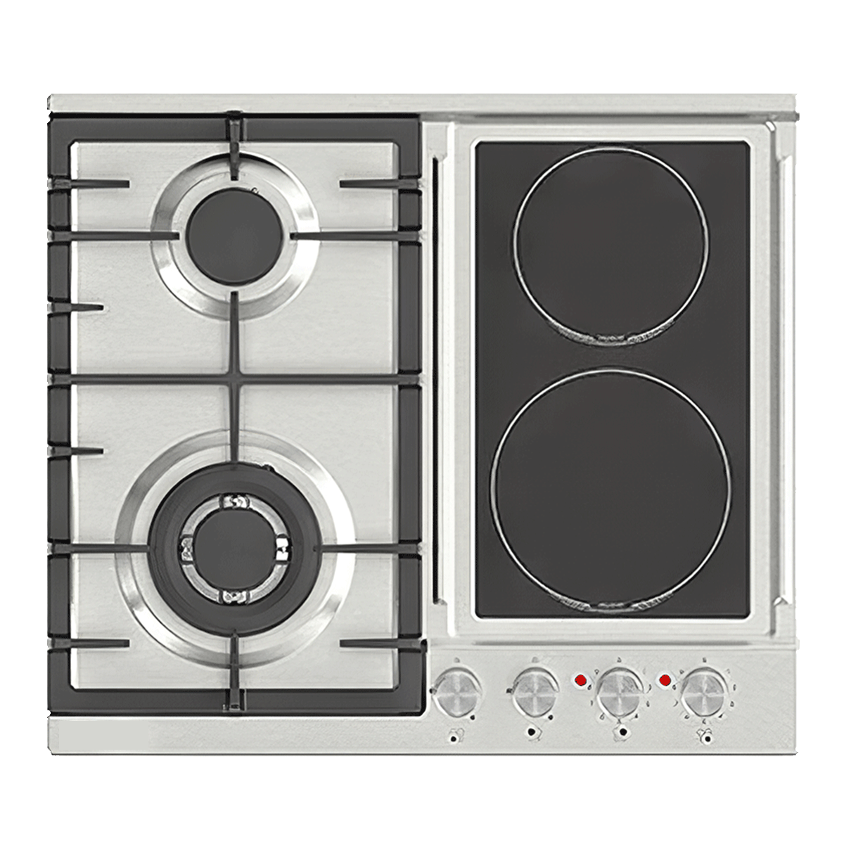 Il padrone flessibile della tua cucina: una piastra in acciaio inox da 60 cm, 2 fuochi a gas e 2 elettrici in vetroceramica, offre la possibilità di cucinare secondo tutti i gusti! Dotata di due fuochi, un bruciatore grande e funzioni automatiche, questa meraviglia ibrida combina metodi di cottura tradizionali e moderni.