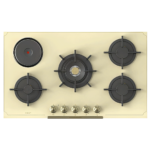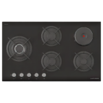 La stufa a gas con pannello in vetro da 860 x 520 mm, 4 punti fuoco a gas e 1 unità di cottura elettrica crea un’ampia gamma di possibilità per gli utenti. Offre comodità con le funzioni di accensione automatica e controllo automatico dell’acceleratore. Anche le griglie in ghisa personalizzate sono tra le caratteristiche aggiuntive di questa lastra.