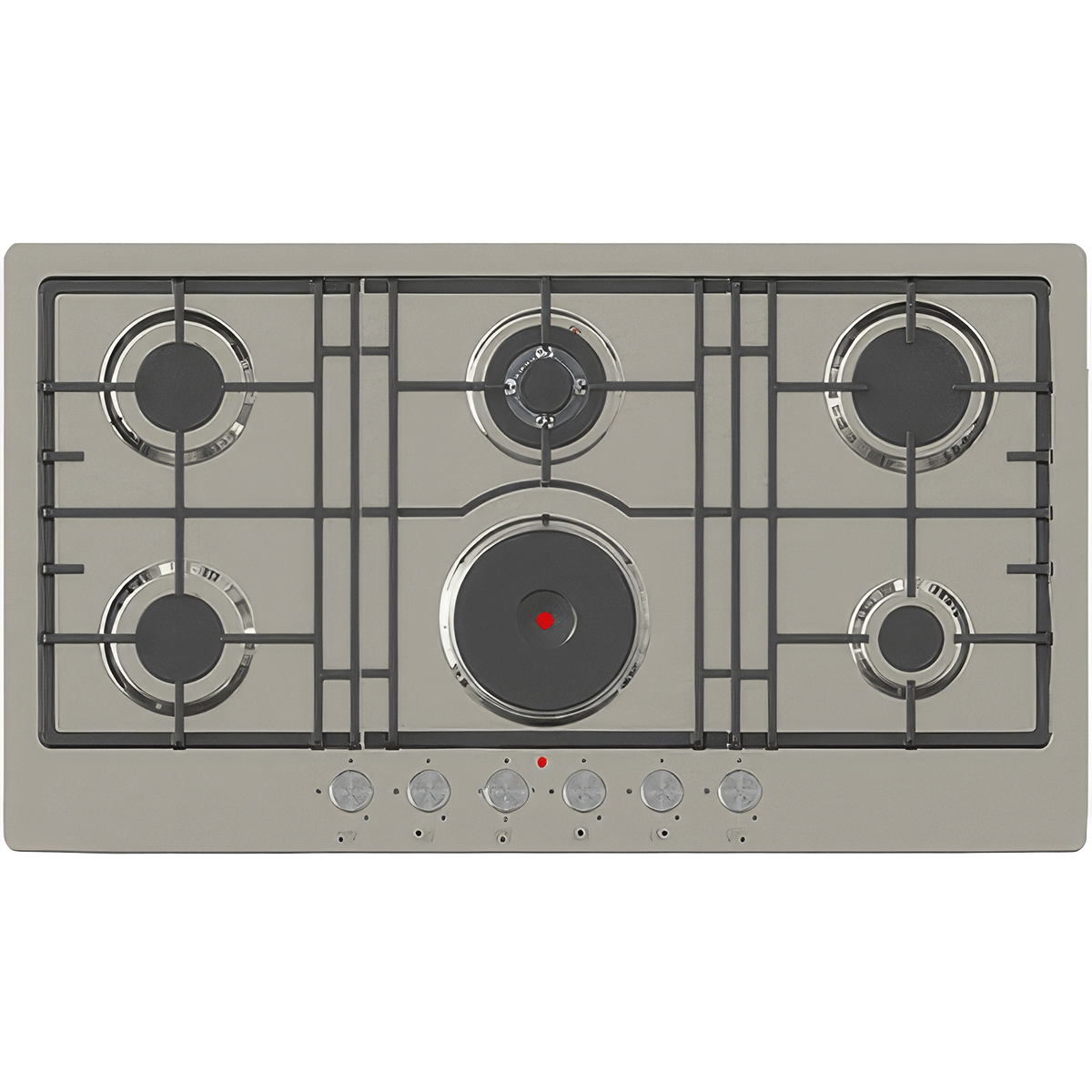 Il piano cottura a gas da 90 cm è estetico e durevole grazie al suo corpo in acciaio inossidabile e alla finitura in acciaio inossidabile. Dotato di 4 fuochi a gas e 2 unità di cottura elettriche in vetroceramica, questo piano cottura offre un utilizzo sicuro e conveniente con funzioni di accensione automatica e controllo del gas