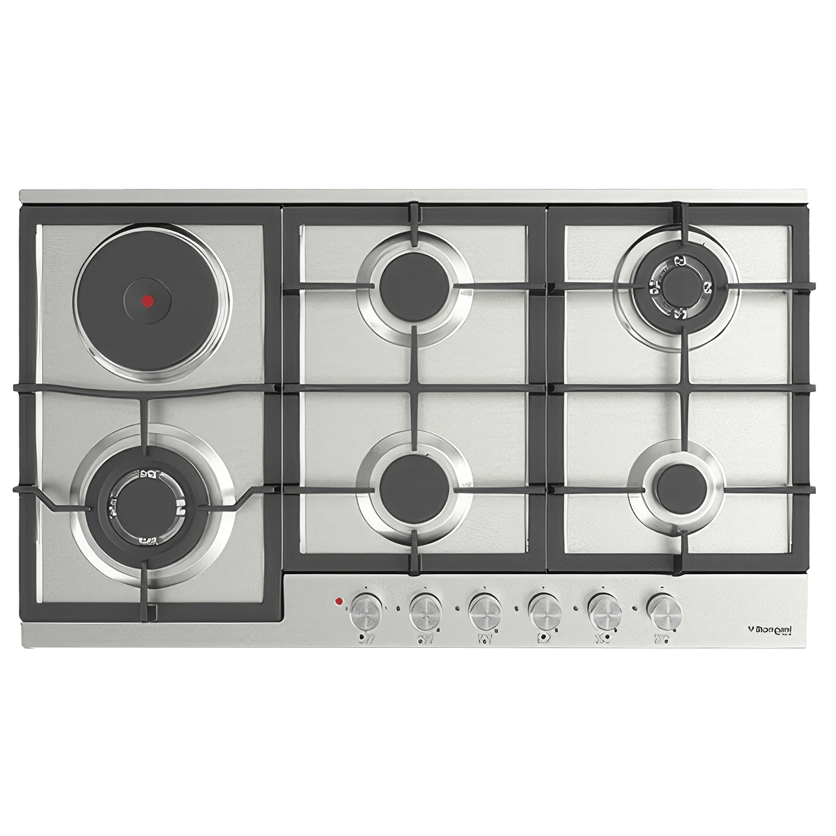 Il piano cottura a gas da 90 cm ha un design moderno e resistente con corpo in acciaio inox e finitura in acciaio inox. Dotato di 5 fuochi a gas e 1 unità di cottura elettrica in pietra, questo fornello offre un utilizzo sicuro e conveniente con funzioni di accensione automatica e controllo del gas.