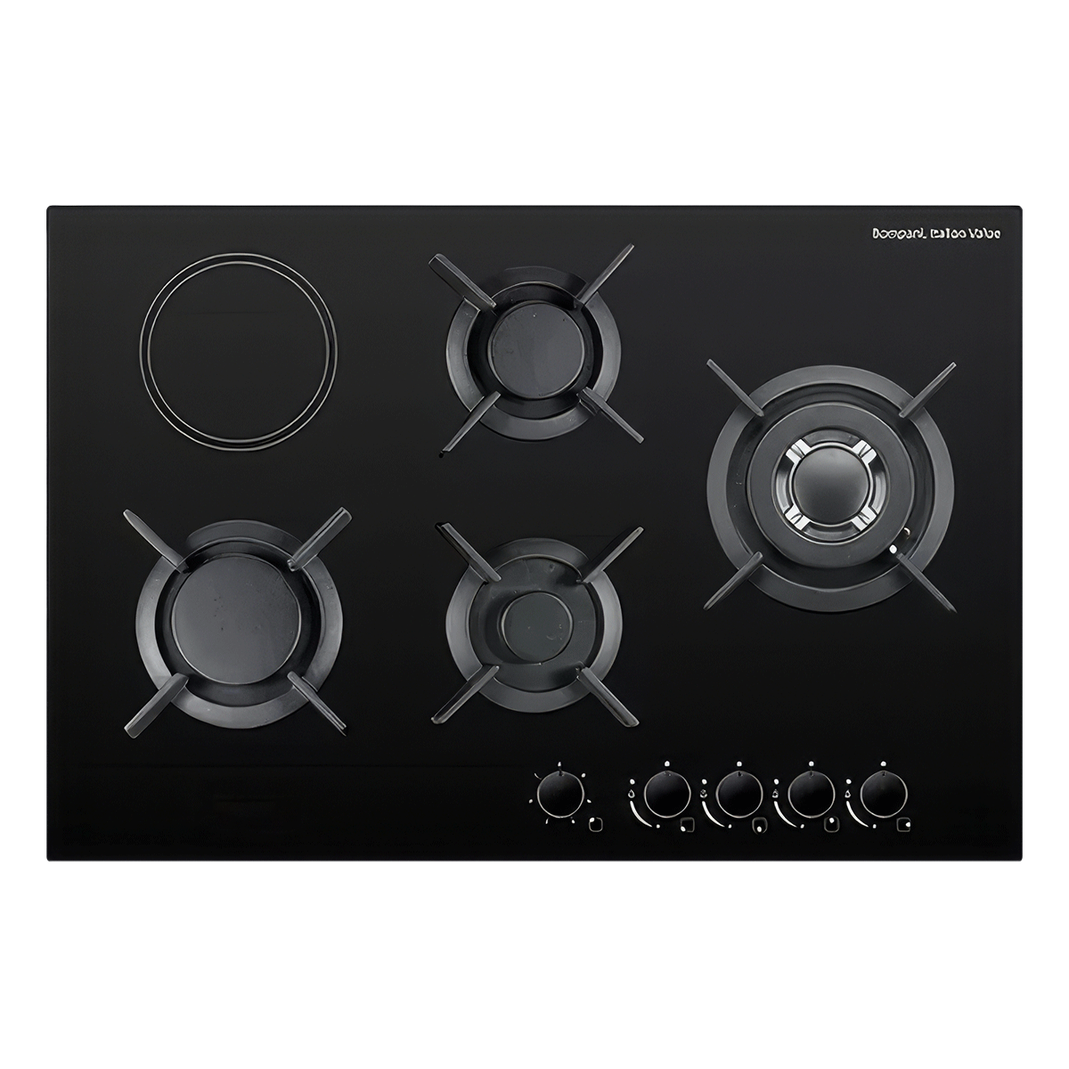 Dotato di piano cottura a gas in vetroceramica nero da 75 cm, 4 punti fuoco a gas e 1 unità di cottura elettrica in vetroceramica. I grandi occhi a doppia fiamma offrono comodità con le funzioni di accensione automatica e controllo automatico dell’acceleratore.