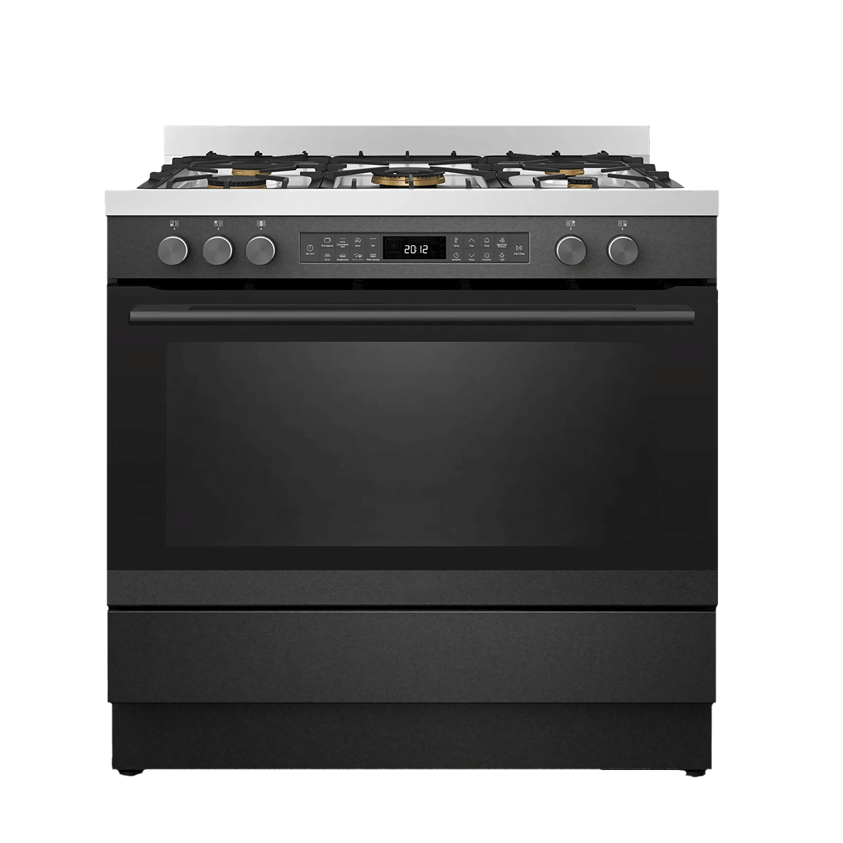 Il forno turbo a libera installazione da 90 cm ha un aspetto estetico con vetro temperato nero e offre un’ampia gamma di possibilità di cottura con un volume di 148 litri. È dotato di 5 unità di cottura a gas nella parte superiore e forno elettrico multifunzione nella parte inferiore, con 15 programmi e funzione Friggitrice ad Aria.
