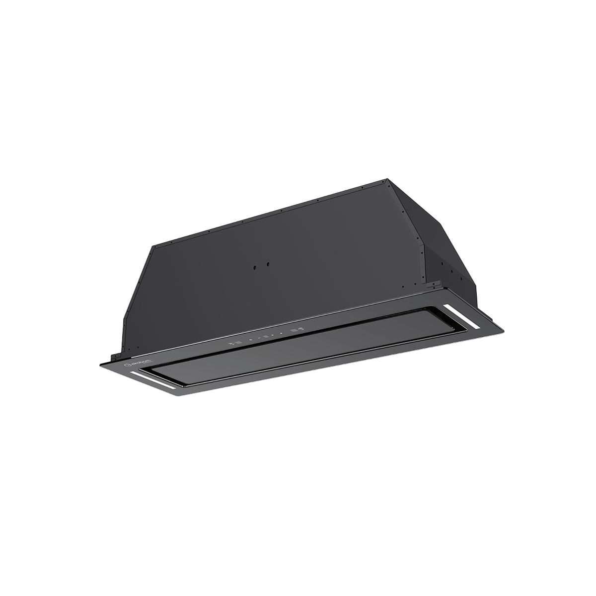 Cappa aspirante da incasso da 90 cm in colore nero con una capacità di aspirazione di 1400 m³/h. Offre 5 diverse velocità, funzionamento ultra silenzioso, timer programmabile, pannello di controllo touch e illuminazione a LED.