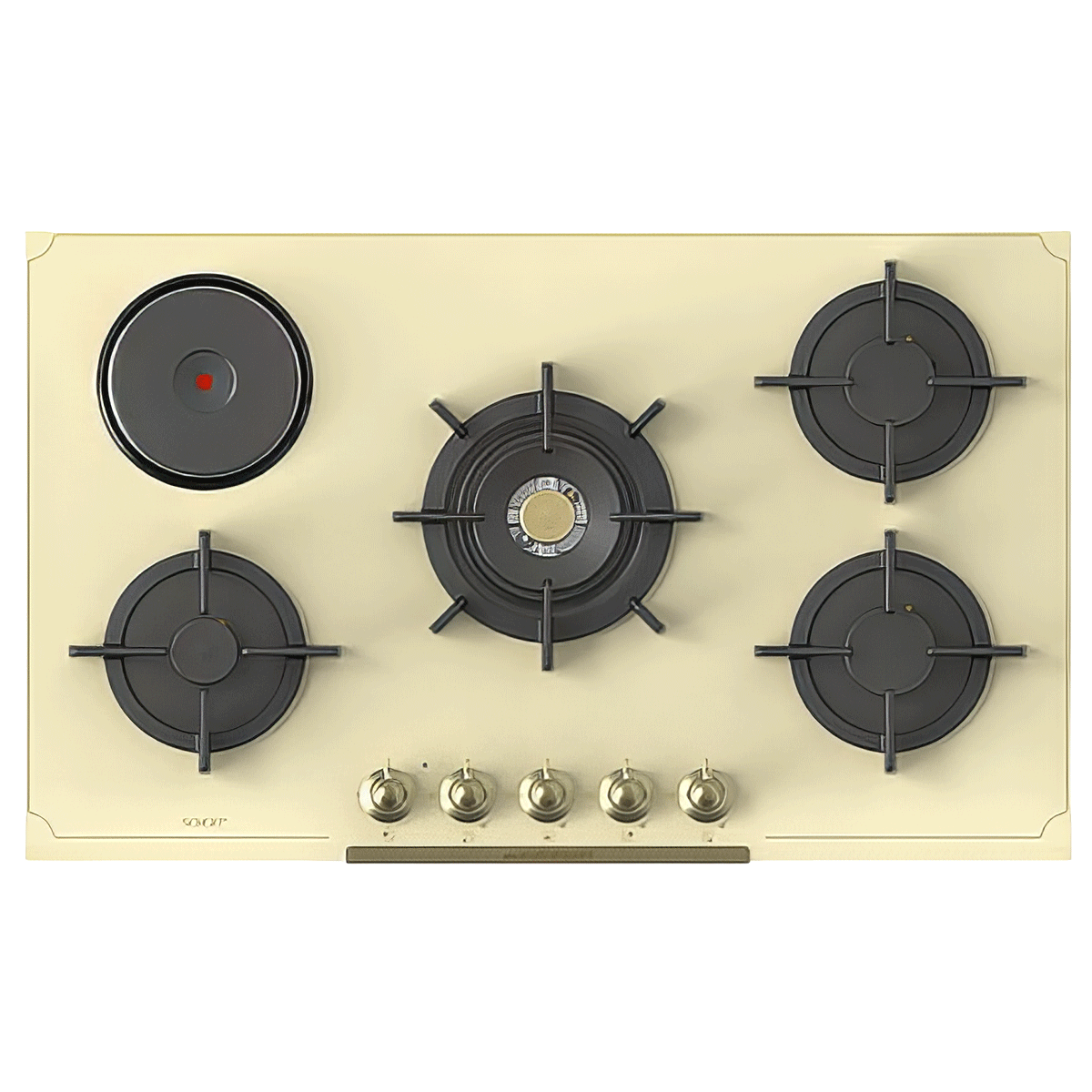 La stufa a gas con pannello in vetro da 860 x 520 mm, 4 punti fuoco a gas e 1 unità di cottura elettrica crea un’ampia gamma di possibilità per gli utenti. Offre comodità con le funzioni di accensione automatica e controllo automatico dell’acceleratore. Anche le griglie in ghisa personalizzate sono tra le caratteristiche aggiuntive di questa lastra.