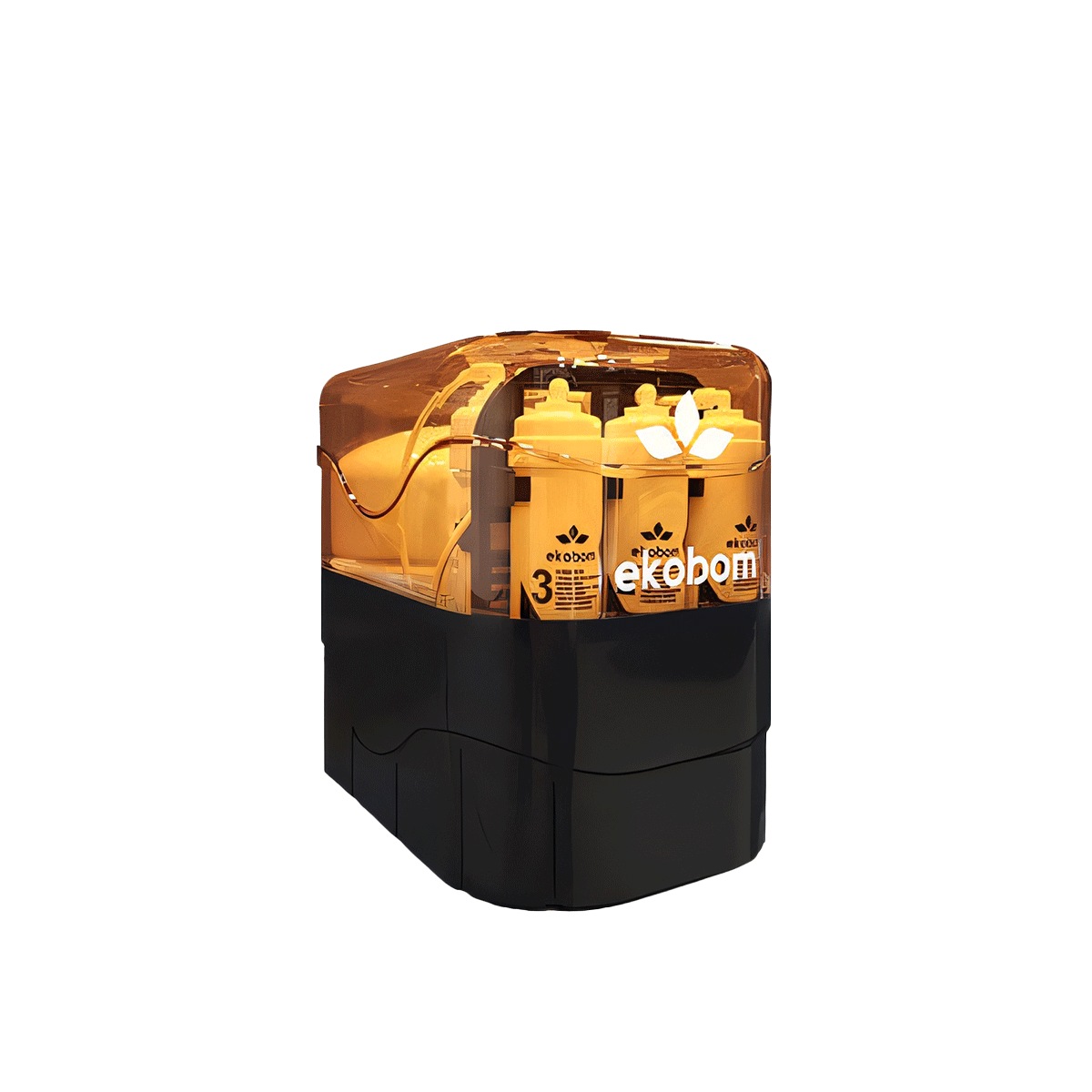 Il sistema di purificazione dell’acqua “Osmosi inversa” è dotato di filtrazione a 6 stadi. La membrana da 75 GPD e 2 filtri a carbone in linea assicurano che l’acqua sia pulita e sana. Fornisce agli utenti acqua a lungo termine con una bottiglia d’acqua da 12 litri. Il design del sistema pompato e chiuso aumenta la sicurezza e l’efficienza.