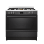 Il forno turbo a libera installazione da 90 cm ha un aspetto estetico con vetro temperato nero e offre un’ampia gamma di possibilità di cottura con un volume di 148 litri. È dotato di 5 unità di cottura a gas nella parte superiore e forno elettrico multifunzione nella parte inferiore, con 15 programmi e funzione Friggitrice ad Aria.