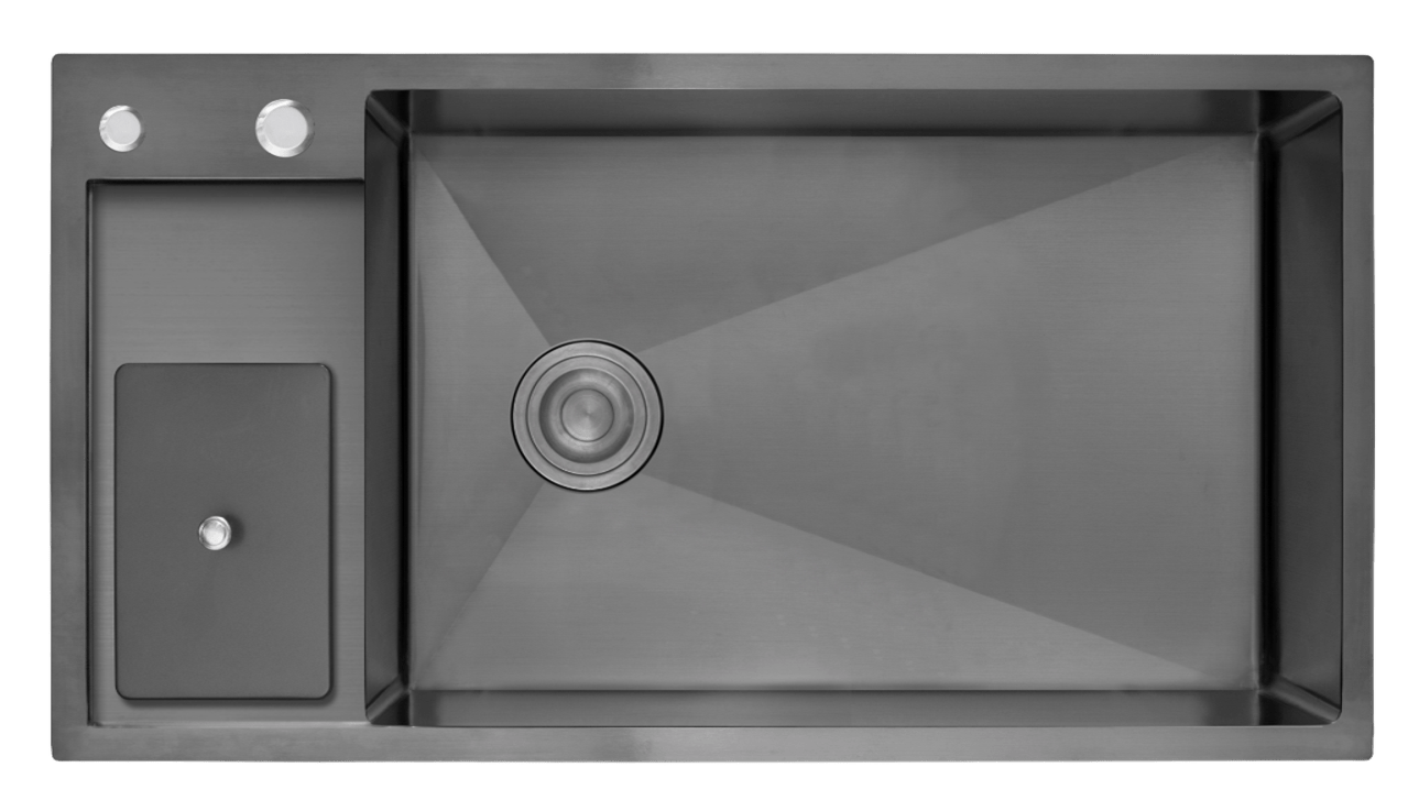Questo lavello è realizzato in acciaio inossidabile 304 di alta qualità e garantisce una lunga durata grazie alla sua resistenza alla corrosione. Grazie alla speciale tecnologia PVD, la superficie è protetta da graffi e macchie, mentre la finitura in inox nero opaco dona alla cucina un aspetto moderno ed elegante.