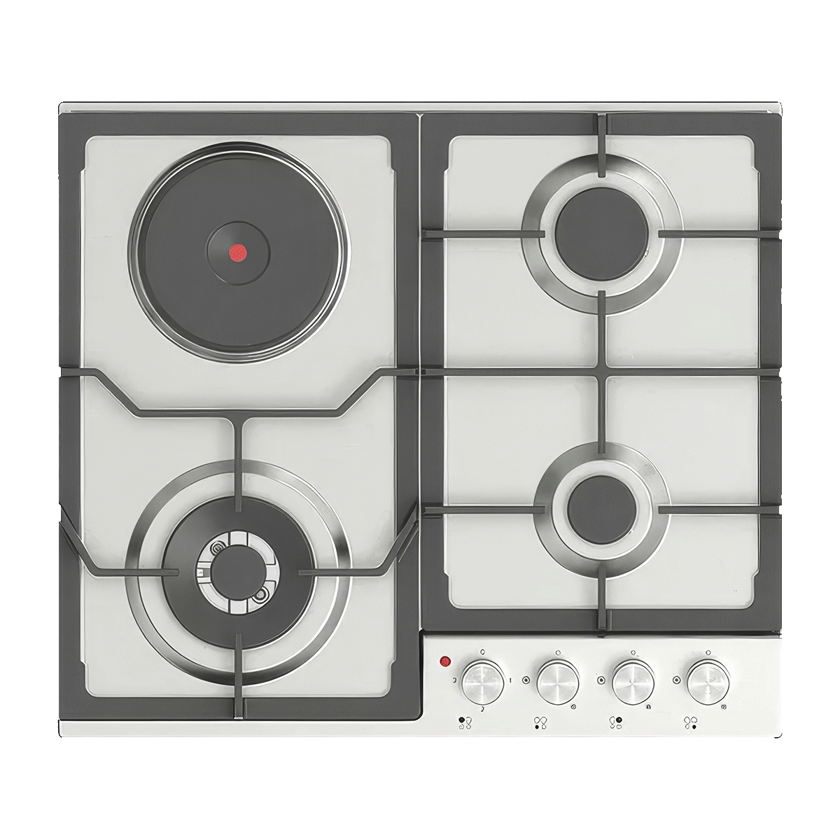 Il poliedrico eroe della tua cucina: piastra in acciaio inox da 60 cm, 3 fuochi a gas e 1 elettrico, amplia le tue possibilità di cottura! Dotato di due fuochi, un’ampia griglia e funzioni automatiche, questo piano cottura è un compagno di cucina potente e facile da usare.