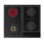 Dotato di un piano cottura a gas in vetroceramica nero da 60 cm, 3 punti fuoco a gas e 1 unità di cottura elettrica in vetroceramica. Offre comfort agli utenti grazie ai suoi grandi occhi con due fiamme, all’accensione automatica e alle funzioni di controllo automatico dell’acceleratore.