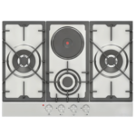 Il piano cottura a gas inox da 70 cm è dotato di carrozzeria in acciaio inox. Con tre punti fuoco a gas e un’unità di cottura elettrica in pietra, offre un’ampia gamma di possibilità per gli utenti. I grandi occhi a doppia fiamma offrono comodità con le funzioni di accensione automatica e controllo automatico dell’acceleratore.